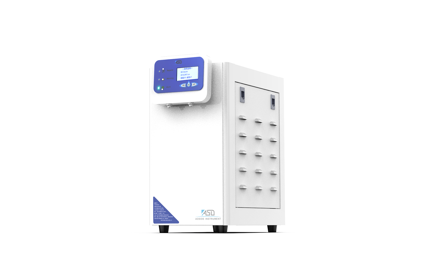 可设置RO纯水产水不合格报警(用户可任意设置报警值),文字、指示灯双重自动提示